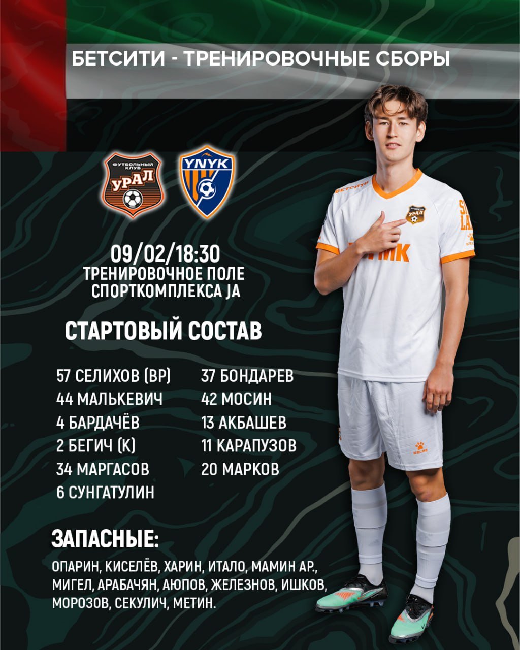 "Урал" опубликовал состав на товарищеский матч с китайской командой