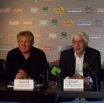 Затем последовали вопросы журналистов, на которые "экзаменуемые" отвечали весьма уклончиво. Так, Владимир Хашиг заявил, что краснодарское дерби, разговоры о котором уже сегодня вызывают в местной болельщицкой среде огромный резонанс, для клуба будет не более чем борьбой за три очка. Генеральный директор так же, не стал раскрывать планов далее, чем на один год, и не ответил на вопрос о сроках планируемой постановки задачи выхода команды в элитный дивизион. Толчком к этому, по его словам, должна стать готовность клуба к повышению в классе, причем, прежде всего - спортивная.