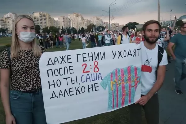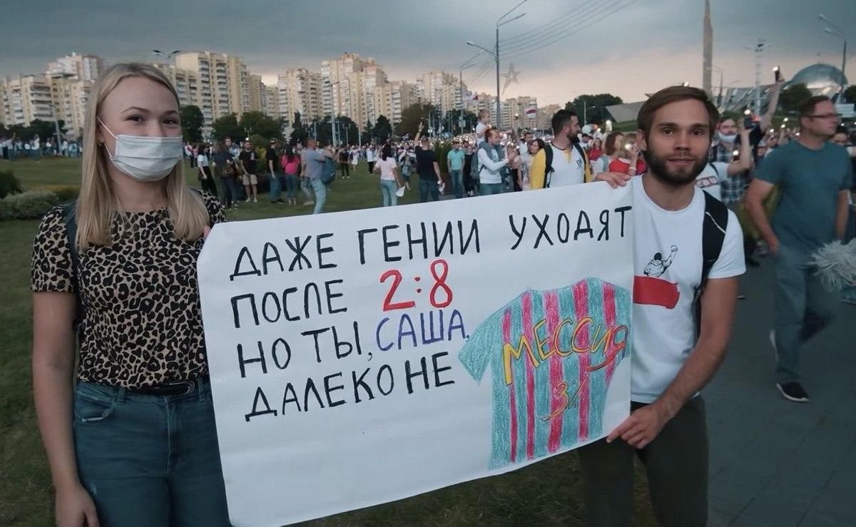 "Даже гении уходят после 2:8". На митингах в Белоруссии Лукашенко сравнили с Месси (фото)