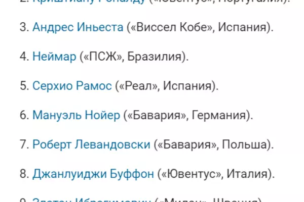 Отметим, что список был составлен на основе голосования, которое было проведено среди представителей 150 стран. Лучшим игроком десятилетия стал нападающий "Барселоны" и сборной Аргентины Лионель Месси. Второе место занял форвард "Ювентуса" и сборной Португалии Криштиану Роналду. Тройку лучших замкнул полузащитник "Виссел Кобе" и бывший игрок "Барселоны" и сборной Испании Андреас Иньеста.