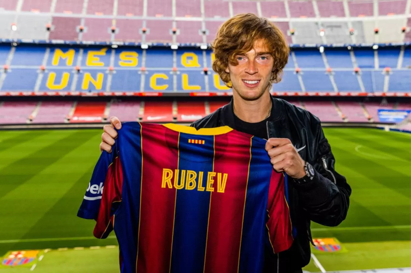 Российский теннисист, седьмая ракетка мира Андрей Рублёв посетил стадион "Барселоны" "Камп Ноу", а также рассказал, с кем дружит из игроков каталонского клуба.