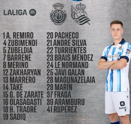 Пресс-служба "Реала Сосьедад" опубликовала список из 23 игроков, которые смогут принять участие в матче 25-го тура Ла Лиги против "Мальорки". Игра состоится сегодня, 18 февраля, и начнется в 20:30 по московскому времени.