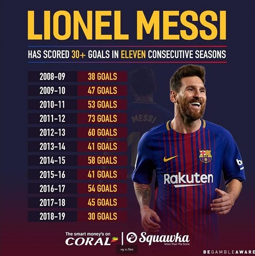 Для легенды «Барсы» (да и всего футбола вообще) забитый мяч стал 30-м в текущем сезоне во всех турнирах. Поразительно, но аргентинец забивает не меньше тридцати мячей за сезон уже 11-й сезон подряд.