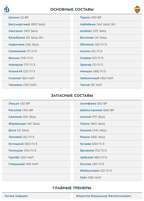 Акинфеев - в запасе ЦСКА на матч против "Динамо" 19 августа 2023 13:48 Стали известны составы команд на матч 5 тура РПЛ "Динамо" - ЦСКА.