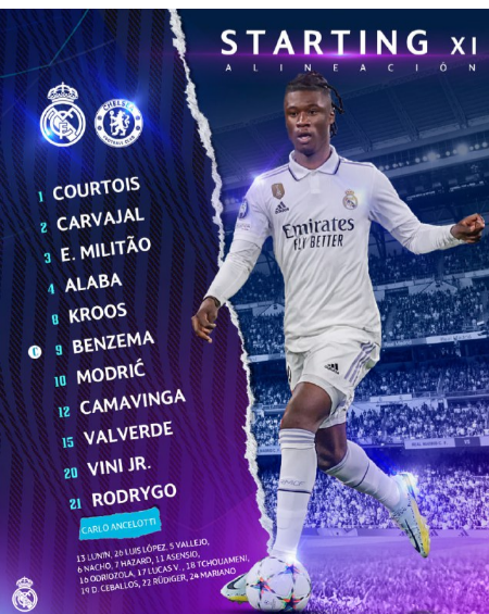 Бензема, Винисиус и Модрич - в основе "Реала" на матч 1/4 финала ЛЧ против "Челси" 12 апреля 2023 20:28 Наставники "Реала" и "Челси" определились с составами на поединок четвертьфинала Лиги Чемпионов.