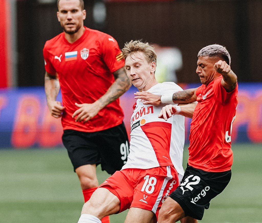 "Спартак" и "Химки" сыграли вничью по итогам первого тайма. Гол в ворота красно-белых был отменен после просмотра VAR 28 июля 2024 16:05 Во встрече подмосковных "Химок" и московского "Спартака" после 1-го тайма счет остается ничейным - 0:0