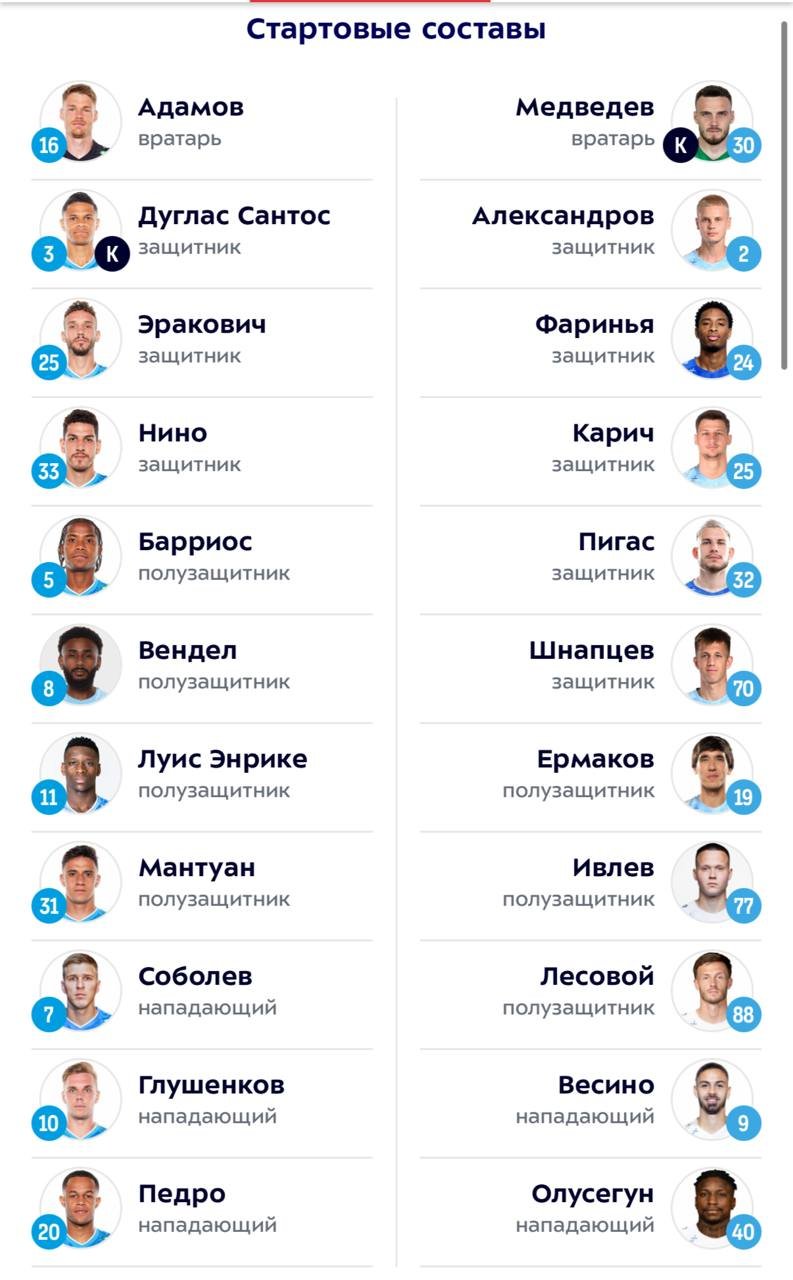 "Зенит" - "Пари НН": стартовые составы на матч 7-го тура РПЛ 30 августа 2025 15:01 Стали известны составы на матч 7-го тура РПЛ между "Зенитом" и "Пари НН".