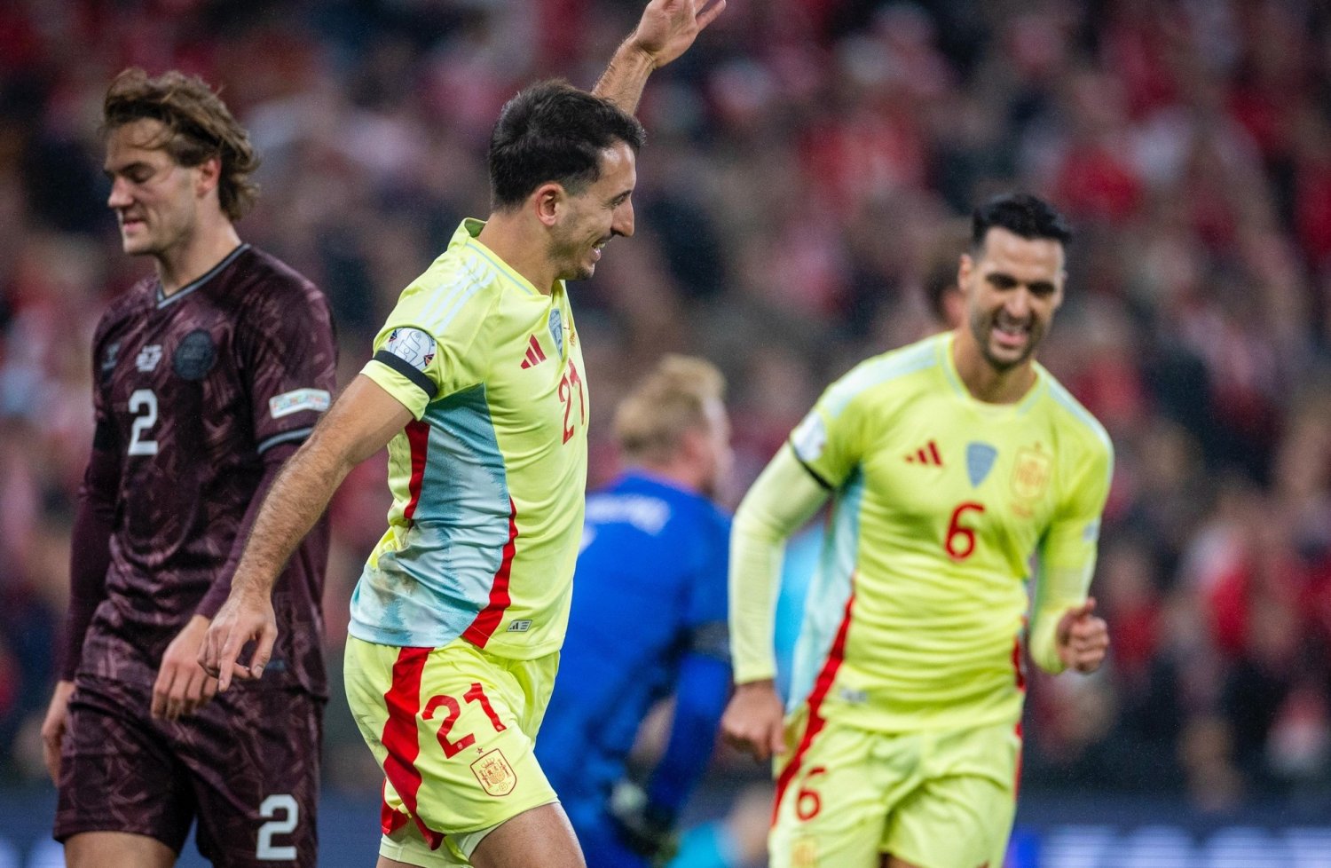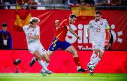 Сборная Испании обыграла команду Дании и обеспечила себе первое место в группе Лиги наций 16 ноября 2024 00:44 Сборная Испании в матче 5-го тура Лиги наций УЕФА сезона-2024/25 обыграла команду Дании со счётом 2:1.