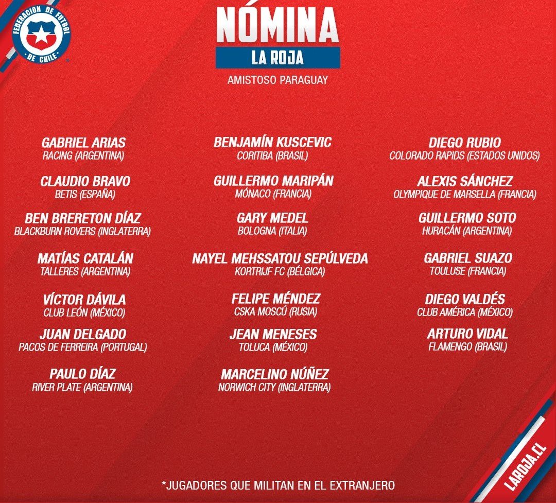 Хавбек ЦСКА Мендес вызван в сборную Чили на контрольный матч против Парагвая 11 марта 2023 12:50 Сборная Чили обнародовала заявку своей команды на матч против сборной Парагвая.