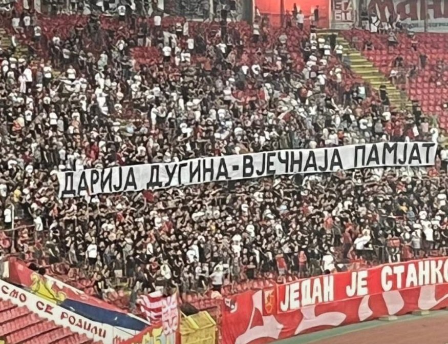 Фанаты "Црвены Звезды" организовали акцию памяти погибшей журналистки Дарьи Дугиной (фото) 28 августа 2022 12:42 Активные болельщики белградской "Црвены Звезды" устроили специальный перфоманс в память погибшей российской журналистки Дарьи Дугиной.