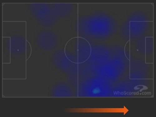 Тепловая карта перемещений Артема Дзюбы, данные Whoscored