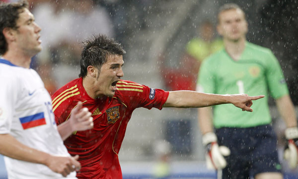 Больше других, пожалуй, выделялись Аршавин и Павлюченко. Впрочем, остальные футболисты, выступавшие в основном составе, тоже демонстрировали высокий уровень. На мой взгляд, у России сейчас очень симпатичная команда, которая серьезно прибавила в последнее время. Разумеется, здесь немалая заслуга главного тренера, которого прекрасно знает весь мир. Гус Хиддинк – блестящий специалист, один из лучших в современном футболе", – сказал Вилья "Спорт-Экспрессу".
