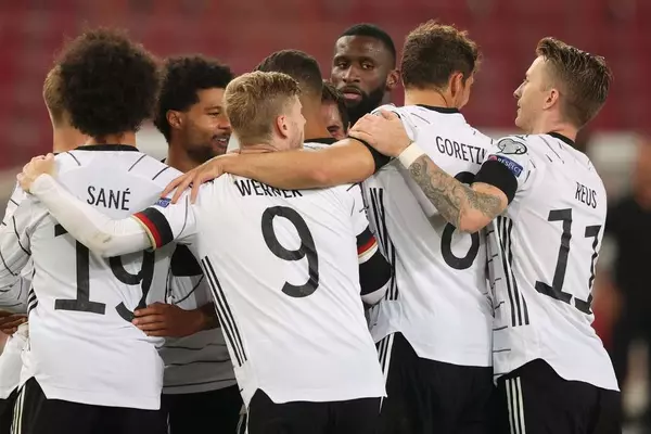 Германия разгромила Армению и вышла на 1 место в отборочной группе ЧМ-2022 5 сентября 2021 23:38 Сборная Германии не оставила шансов команде Армении в матче отборочного турнира ЧМ-2022. Фото: AFP Бундестим довела счет до разгромного уже в первом тайме - отличились Марко Ройс, Тимо Вернер и Серж Гнабри, оформивший дубль. Во второй половине игры огорчили армянскую команду Йонас Хофманн и Карим Адейеми. Германия, набрав 12 очков, возглавила турнирную таблицу группы J. Армения с 10-ю зачетными баллами занимает 2-е место. Чемпионат мира5 турГермания 6:0 АрменияГолы: Гнабри, 6, 15, Ройс, 35, Вернер, 44, Хофманн, 52, Адейеми, 90+1.Германия: Нойер, Рюдигер, Зюле, Керер (Раум, 83), Хофманн, Горецка, Киммих (Гюндоган, 60), Ройс (Вирц, 60), Сане (Мусиала, 60), Гнабри (Адейеми, 72), Вернер.Армения: Юрченко, Ароян, Восканян, Оганесян, Амбарцумян (Тертеян, 57), Григорян, Вбеймар (Удо, 46), Мхитарян, Байрамян (Аванесян, 82), Барсегян (Бичахчян, 70), Адамян (Гелоян, 46).Предупреждения: Ароян, 50. Подписывайтесь на новости футбола от Rusfootball.info в Telegram, Яндекс.Новостях и Гугл.Новостях. Все главные и интересные новости тут Гугл.Новости Яндекс.Новости Телеграм Сборная Германии Сборная Армении Автор: Нашли ошибку в статье? Напечатать | 1 +1