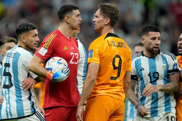Эмилиано Мартинес – о главном арбитре Матеу Лаосе: худший с отрывом судья на ЧМ-2022. Он хотел, чтобы мы сыграли вничью 10 декабря 2022 09:02 Голкипер сборной Аргентины Эмилиано Мартинес оценил судейство в матче 1/4 финала ЧМ-2022 с Нидерландами (2:2, 4:3 пен.). Фото: Getty Images – Они дважды подошли к моим воротам в концовке. Не знаю, чем руководствовался судья, но он добавил к основному времени 10 минут. Он хотел, чтобы мы сыграли вничью. Правда в том, что это худший с отрывом судья на чемпионате мира, – цитирует Мартинеса TyC Sports.Сборная Аргентины встречалась в своем четвертьфинале ЧМ-2022 с Нидерландами вчера, 9 августа. К 73-й минуте аргентинцы добились преимущества в два мяча за счет голов Молины и Месси, но голландцы смогли отыграться, забив на 83-й и 101-й минуте (дубль оформил Вегорст, вышедший на поле вместо Депая на 78-й минуте) К основному времени матча главный арбитр Матео Лаос добавил 10 минут. В дополнительное время забитых мячей не случилось, а в серии послематчевых пенальти Аргентина превзошла Нидерландов со счетом 4:3. В полуфинале аргентинцы сойдутся с хорватами, которые вчера выбили из турнира бразильцев, обыграв их в серии пенальти. Подписывайтесь на новости футбола от Rusfootball.info в Telegram, Яндекс.Новостях и Гугл.Новостях. Все главные и интересные новости тут Гугл.Новости Яндекс.Новости Телеграм Сборная Лаоса Чемпионат Мира Сборная Аргентины Сборная Нидерландов Опубликовал: Нашли ошибку в статье? Напечатать | 3 +1