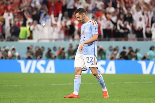 Сборная Испании в серии пенальти проиграла Марокко, не забив ни одного одиннадцатиметрового 6 декабря 2022 20:48 Сборная Испании покидает ЧМ-2022. Фото: Getty Images Основное время встречи завершилось нулевой ничьей. Дополнительное время тоже не выявило победителя, поэтому игра перешла в серию пенальти, где точнее оказались марокканцы, а подопечные Луиса Энрике не реализовали ни одну попытку с точки.Чемпионат мира1/8 финалаМарокко 0:0 Испания(3:0 в серии пенальти)Марокко: Боно, Хакими, Агер (Эль-Ямик, 86), Мазрауи (Аттийят-аллах, 84), Сес, Унаи (Банун, 119), Амрабат, Амалла (Хеддира, 82), Зиеш, Буфаль (Абде, 67), Эн-Несири (Сабири, 82)Испания: Симон, Лапорт, Альба (Фати, 100), Льоренте, Эрнандес, Гави (Солер, 62), Бускетс, Педри, Ольмо (Бальде, 100), Торрес (Уильямс, 76 (Сарабия, 117)), Асенсио (Мората, 62)Предупреждения: Лапорт, 77, Сес, 90+1 Подписывайтесь на новости футбола от Rusfootball.info в Telegram, Яндекс.Новостях и Гугл.Новостях. Все главные и интересные новости тут Гугл.Новости Яндекс.Новости Телеграм Сборная Испании Сборная Марокко Опубликовал: Игнат Заздравин Нашли ошибку в статье? Напечатать | 8 -2