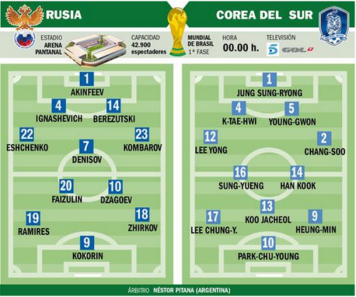 Мы попали... 18 июня 2014 04:13 В поликлинике сборная России не переставала бы отвечать "Я" на вопрос "Кто последний?" с приходом новых людей. Ведь первый матч команды состоялся позже, чем вторая игра бразильцев, которая и приковывала внимание всего мира. Rusfootball.info о том, как в тени зрительского внимания и во тьме, окутавшей европейскую часть России, стартовали две невзрачные сборные из самой слабой группы чемпионата. Чемпионат мира1 турРоссия – Южная Корея1:1 Голы: Кержаков, 74 - Ли Гын Хо, 69Россия: Акинфеев - Ещенко, В.Березуцкий, Игнашевич, Д.Комбаров - Файзулин, Глушаков (Денисов, 71), Шатов (Дзагоев, 59), Самедов, Жирков (Кержаков, 70) - Кокорин.Южная Корея: Чон Сон Рен - Ли Юн, Хон Чжон Хо (Хван Сок Хо, 83), Ким Ен Гвон, Юн Сук Ен - Ан Гук Ен, Ки Сон Ен, Ли Чун Юн, Гу Чжа Чхоль, Сон Хын Мин (Ким Бо Ген, 85)- Пак Чу Юн (Ли Гын Хо, 55).Предупреждения: Шатов, 49 - Сон Хен Мин, 14 Ки Сон Ен, 29 Гу Чжа Холь, 90Ну да, мы ждали 12 лет, потому потерпеть ещё несколько дней можно было. Тем более футбол шёл такой, что дабы восхищаться им и получать от него удовольствие, не обязательно было испытывать к кому-то симпатии. Но всё-таки суть футбола в противостоянии. И сегодня все мы заняли одну из сторон, наконец покончив с вопиющим упущением российского футбола, согласно которому на главном празднике мы не появляемся, потому как этого не заслуживаем.Эта команда - заслужила, потеряв очки только там, где это было можно. Во многом благодаря своему лидеру, вокруг которого она складывалась и которого лишилась. Однако, эта тема все же немного надоела: Широкова уже не вернешь, надо думать о тех, кто есть. Да и я вот, например, не считаю, что по значимости для Рома сборной как Рыжий для "Иванушек". Хотя потому, что на поле выходит ещё 10 человек, которые также должны делать результат.Угадать этих игроков, которые впервые за 12 лет вышли отстаивать честь России на чемпионате мира, было нетрудно. Даже аргентинские СМИ почти справились с этой задачей, но повелись на успехи именинника Дзагоева 2-летней давности и высокую цену игрока, хотя нам-то было понятно: Капелло предпочтет Алану Шатова. В паре Глушаков/Денисов наш тренер склонился к первому варианту, но главная сенсация произошла на правом фланге. Вместо Рамиреса, ожидаемого аргентинскими журналистами, на поле появился некто Самедов, притом под тем же 19-м номером. Но кто их разберет этих русских, они все на одно лицо...То ли дело корейцы - тут все ясно. Почти. Даже я разобрался, угадав в предстартовом обзоре группы 10 позиций. На 11-й, где по прикидкам должен был располагаться левый защитник Ким Чан Су, нас с аргентинскими коллегами, а также Александра Самедова, подстерегал, Юн, вот же ж Сук, Ен! Из английского "Кэ Пэ Эр"Кто-то ещё не спал, кто-то уже не спал (страна-то большая), кто-то поспал и встал. Но все были готовы болеть! Правда, выказывать особых эмоций и будить соседей по ходу первого тайма не приходилось. Не знаю, в курсе ли наши игроки, что на Чемпионат мира приехал поглазеть легенда НБА Кобе Брайант, однако баскетбольное нутро в этой игре чувствовалось: присутствовало постоянное четкое разделение - "мы с мячом", "они с мячом".Ни мы, ни они дивидендов из этого не извлекали: в начале игры после выноса и прохода Хён Мин Сона у корейцев прошла контратака (Сон миловал, как потом и еще раз), наши же в нападение из обороны быстро перейти не могли вообще. Впрочем, и сопернику не да