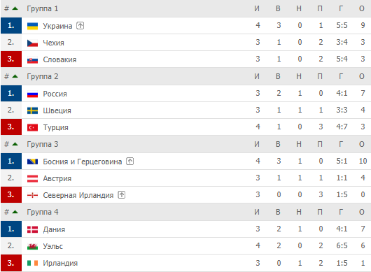На третью и четвёртую группы внимания можно не обращать: Босния с Герцеговиной уже вынесли, а Северная Ирландия идёт на понижение, где ей и место. Победив Уэльс на выезде, датчане гарантировали победу в группе, а Ирландия от вылета уже ничто не спасёт. Другое дело, что когда через год речь зайдёт об отборе на Евро, показатели могут возыметь значение.