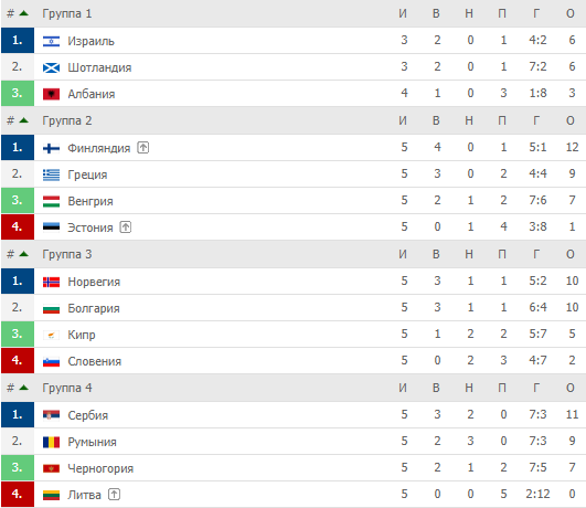Великолепно в Лиге наций выступила Финляндия: поражение от греков 0:1 стало первым для команды, но поскольку в домашней встрече финны преуспели 2:0, с первого места их уже не подвинуть. Эстонцы с последнего тоже никуда не денутся.