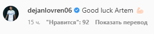 "Удачи, Артем", - написал хорват.