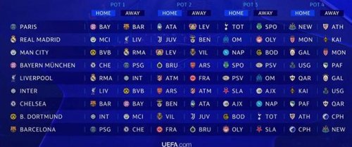 Опубликованы итоги жеребьевки общего этапа ЛЧ.