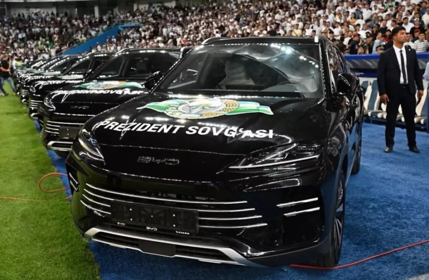 Игрокам и тренерам сборной Узбекистана подарили автомобили за выход на ЧМ-2026 11 июня 2025 01:08 Всем футболистам и тренерам сборной Узбекистана подарили автомобили после матча азиатского отбора на чемпионат мира 2026 года с Катаром (3:0). Фото © X / KingR Национальная команда впервые в истории обеспечила себе выход в финальную часть чемпионата мира по футболу 2026 года. В связи с этим Президент Узбекистана Шавкат Мирзиеев распорядился подарить автомобиль BYD каждому игроку и члену тренерского штаба сборной.Чемпионат мира по футболу 2026 года запланирован на период с 11 июня по 19 июля - матчи будут проходить в городах сразу трёх стран: Канады, Мексики и США.Источник: "СЭ" Подписывайтесь на новости футбола от Rusfootball.info в Telegram, Яндекс.Новостях и Гугл.Новостях. Все главные и интересные новости тут Гугл.Новости Яндекс.Новости Телеграм Сборная Узбекистана Чемпионат Мира Опубликовал: Дмитрий Карпов Нашли ошибку в статье? Напечатать | 2 +2